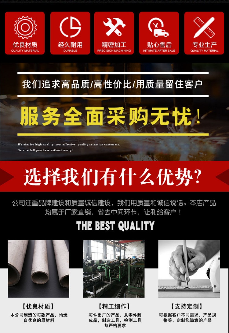 304无缝厚壁钢管的耐蚀性取决于钢中所含的合金元素。铬是使不锈钢获得耐蚀性的基本元素,当钢中含铬量达到12%左右时,铬与腐蚀介质中的氧作用,在钢表面形成一层很薄的氧化膜(自钝化膜),可阻止钢的基体进一步腐蚀。除铬外,不锈钢无缝管常用的合金元素还有镍、钼、钛、铌、铜、氮等,以满足各种用途对不锈钢组织和性能的要求。
